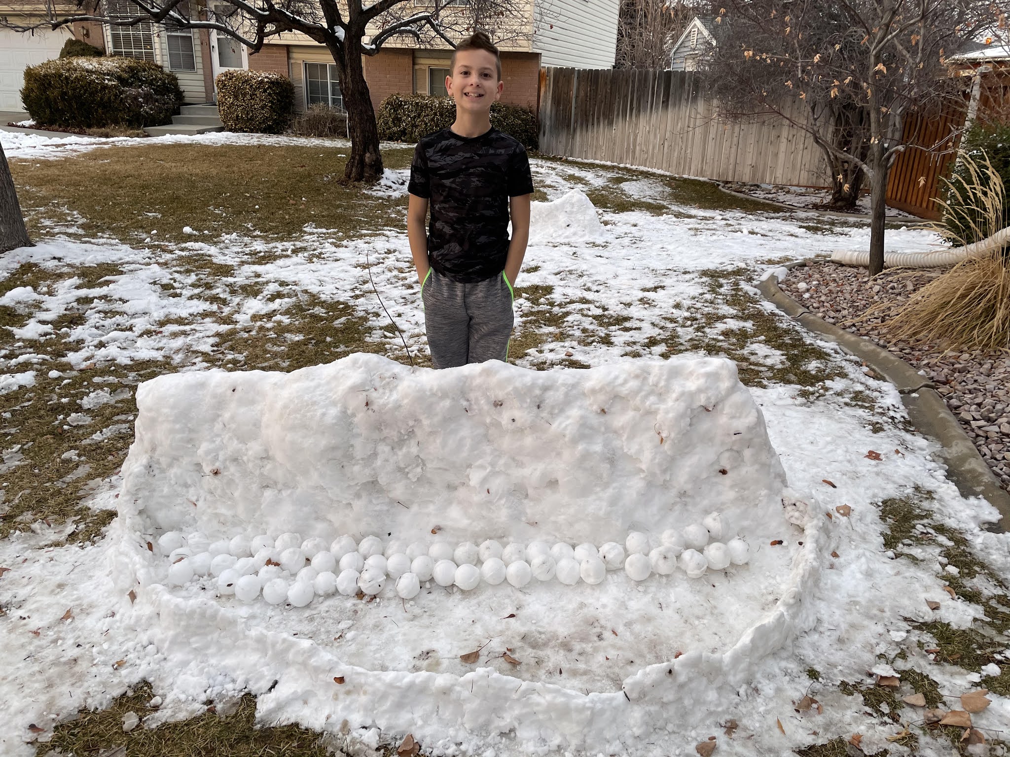 We got some snow this week, and Rockwell and Wyatt built a fort and a stash of snowballs.