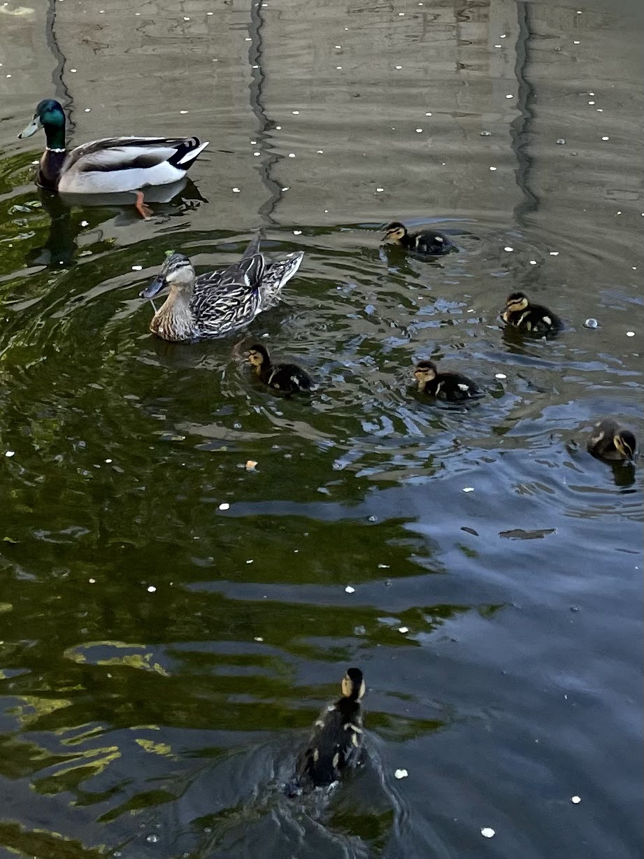 When we got home, we took some bread over to the canal and fed the ducks. They have some cute babies right now.