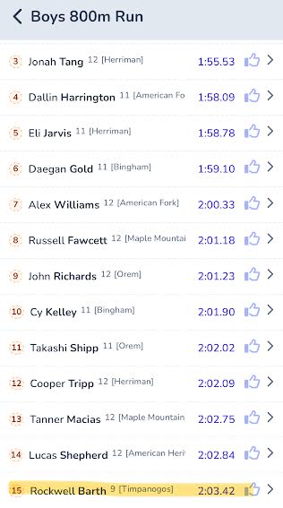 Finish time was 2:03.42. Another PR. Great job Rockwell!!