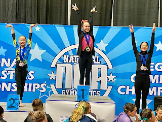 She let her shoulders slump, and then got right back up and finished her routine. I know she was so disappointed that she fell, and also feeling a good amount of pain in her bum. When we were watching the video later, she was proud of how hard she fought to stay on though. After watching the video from the state meet, she was like, "Man, I didn't even try to stay on the beam. I just flopped right off." She was determined to fight if that happened again, and she did. It was great effort!